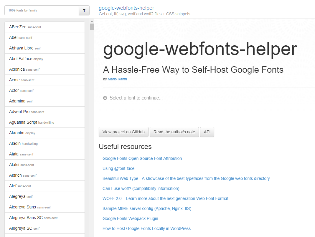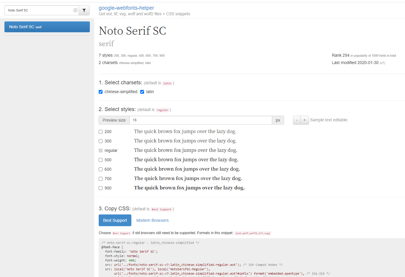 1.在 google-webfonts-helper( https://google-webfonts-helper.herokuapp.com/fonts ) 中选择想要的字体