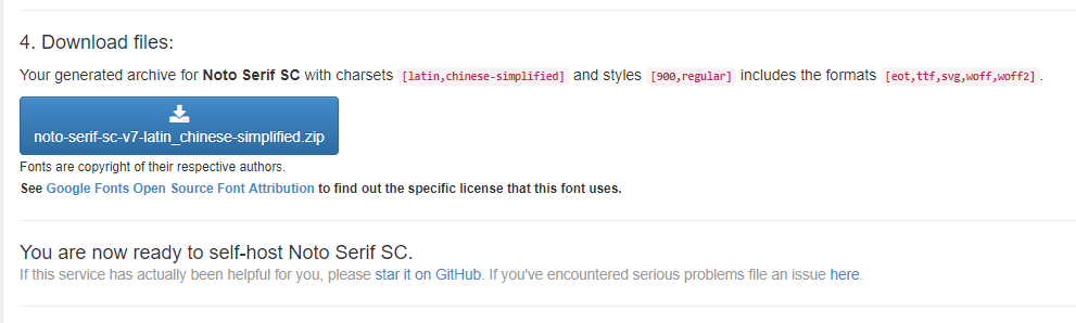 2.左侧输入如Noto Serif SC,右侧勾chinese-simplified latin选400、900